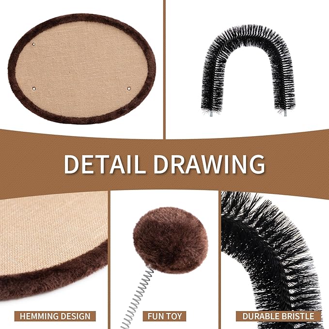 - MULTI FUNCTION USE - Self groomer & massager all in one, minimize nail files and loose hair. Cat Self Grooming and Scratching, Cat groom brush, Cat Scratcher, Cat play toy. Your cat will walk through the arch and brush hair, so you don't have to do anything!