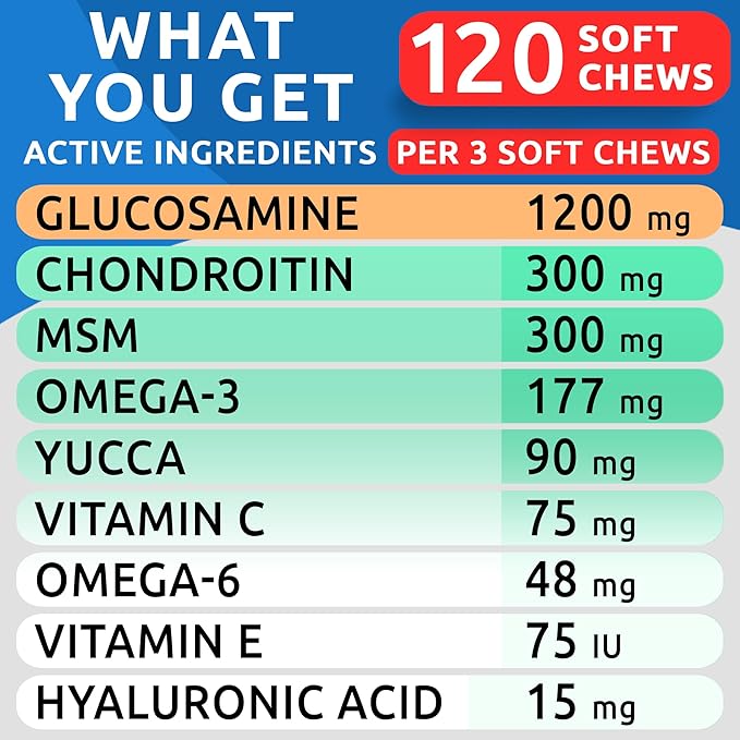 - Trusted Relief: Our vet-approved glucosamine for dogs comes with a 90-day guarantee and easy refund, delivering the strength and care your older pet's joints need. Let them leap with joy again. Join millions of happy tails today.