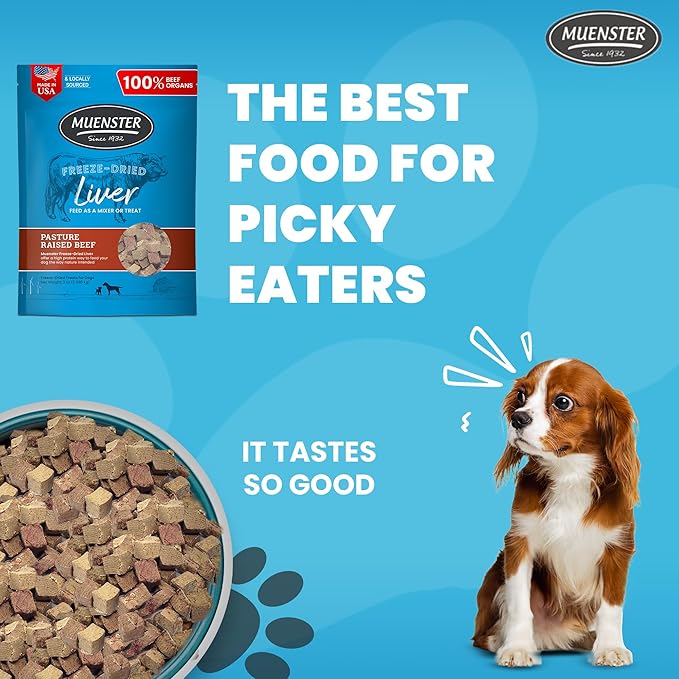 Muenster Freeze Dried Beef Liver Bites - Dog Treats, Mixer or Topper (3oz) - One Ingredient
