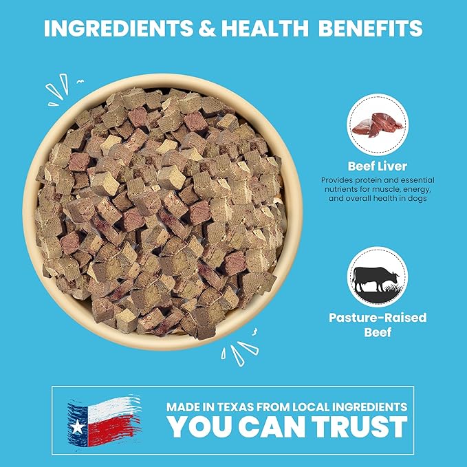 - Made in Texas: Made from USA raised beef without artificial preservatives, our freeze dried beef liver treats are a high quality and healthy choice for your puppy, adult, and senior dog.