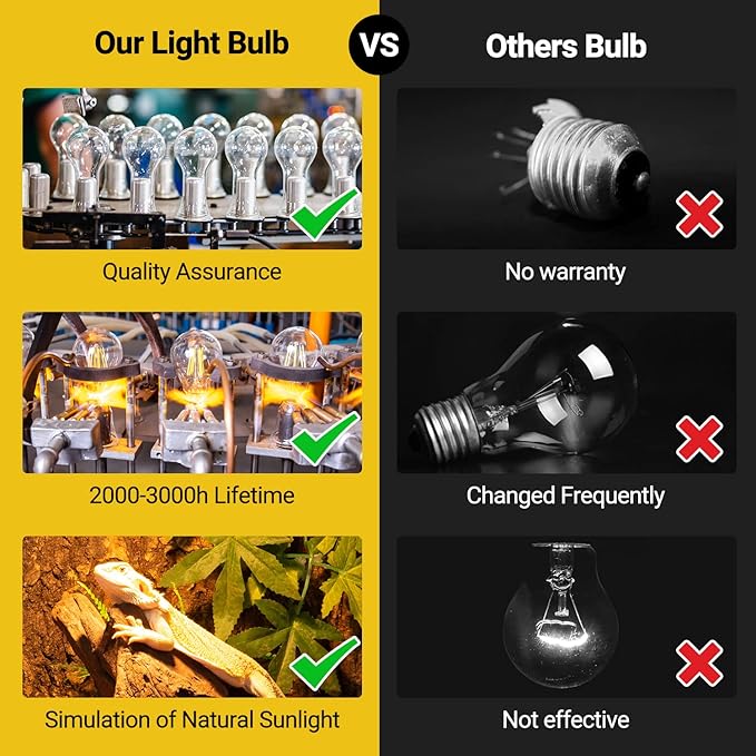 - 【Strict Quality Inspection】Each REPTI ZOO light bulb is strictly tested as 4-stage inspection, appearance inspection, 20 sec lighting test, 30 min aging test and 2 times pulse voltage. We have passed the safety certification to ensure the service life and stability of lamps.