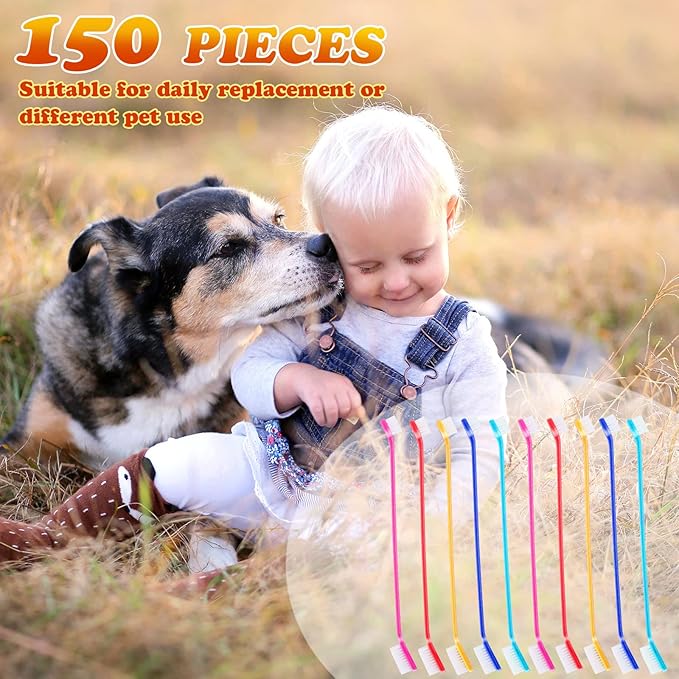 Nuenen 150 Pcs Dog Toothbrush Dual Headed Dental Brushes Puppy Tooth Brushing Kit Long Handle Toothbrush for Large and Small Dogs Cats Most Pets Teeth Cleaning Oral Care Supplies(Vibrant Color)