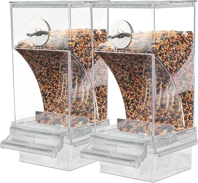 Automatic Bird Feeder, No Mess Acrylic Parrot Foraging Feeder, Transparent Bird Feeders Container Cage Accessories for Most Birds Parrot Canary Cockatoo(2 Pack)