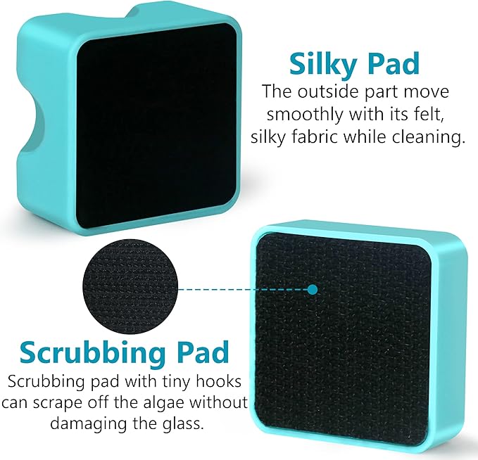 - - Premium Quality : The scrubber side is made of fabric with tiny hooks that scrape off the algae without damaging the glass. Outside, the surface of the handle is covered in felt so it glides smoothly along as you clean.