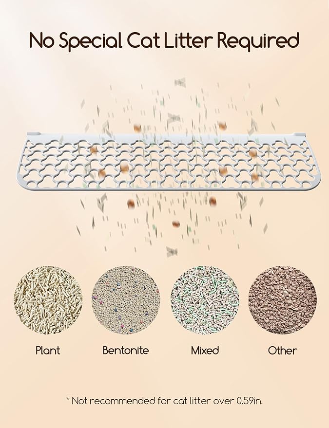 - 【Self Cleaning & Universal Cat Litter】Cat litter box self-cleaning system auto cleans after cat leaves the litter box, and separates cat waste into the enclosed waste bin. Litter box is suitable for various clumping cat litter types with length <15mm. Please pay attention not to pour cat litter beyond the warning line, otherwise the excess cat litter will be cleaned up