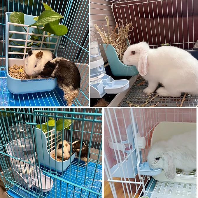 - 【2-IN-1 Food & Hay Feeder】This is a feeder designed for small animals like Guinea Pig, Rabbit, etc.The feeder’s upper layer is a grass rack,and the lower layer is a food bowl. Reduces the forage waste caused by pets feeding and keep the cage in order. White fence in middle separate the forage and grain, which will not cause them to mix. Pets can easily pull hay over the fence while feeding, but it doesn't mess up the cage.
