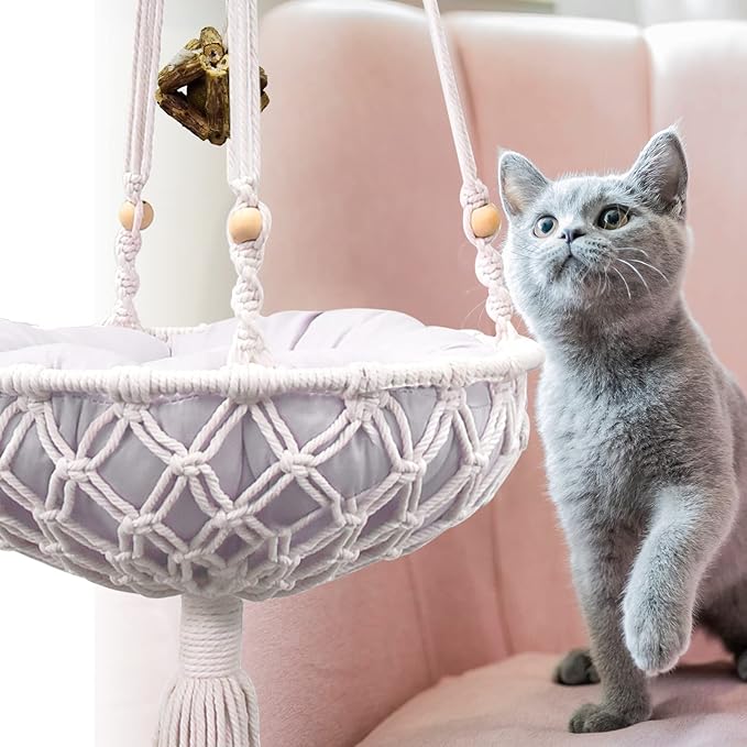 - 【Hammock Cats】Unique design bohemian-style cat swing bed, This hanging bed swing is handmade from 100% natural high-quality hand-woven cotton rope, which makes it a perfect raised cute cat bed even for the pickiest cats and their owners.