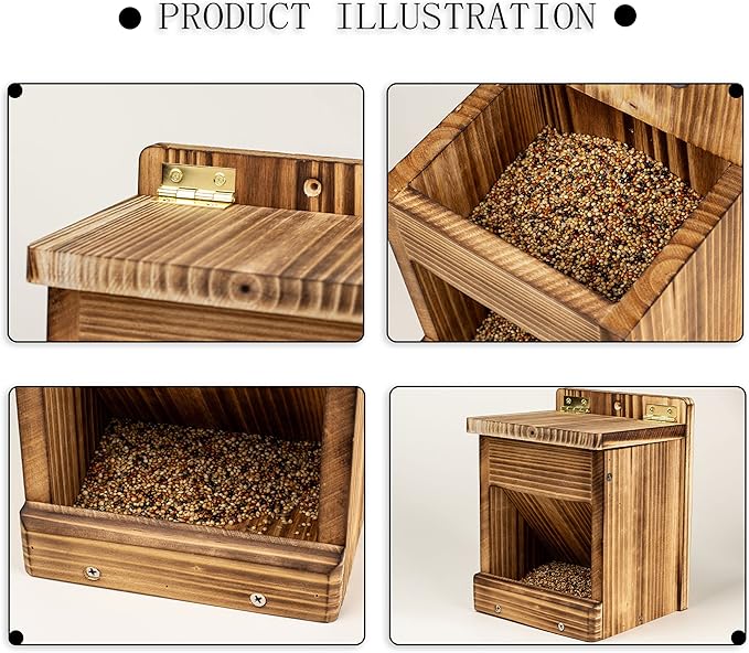 - Design: All handmade and solid wood design. It is durable, beautiful and practical, with movable cover. The bird food will automatically drop after being added,this can keep the food fresh and dry. With the movable cover, it is easier to clean and change bird food.