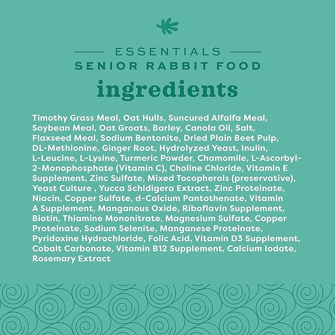 Oxbow Essentials Rabbit Food, Senior, Made with Oxbow Alfalfa for Rabbit, Vitamin & Mineral Rich Pet Pellets, Small Animal Pet Products, Bunny Food, Made in USA, High Fiber, 4 lb. Bag