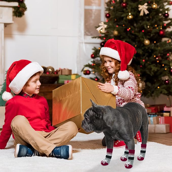 BEAUTYZOO Christmas Winter Anti-Slip Dog Socks with Grips Traction Control for Small Medium Large Dogs, Non Skid Indoor Double Side Pet Paw Protector for Hardwood Floor Wear, Snowflake S/M