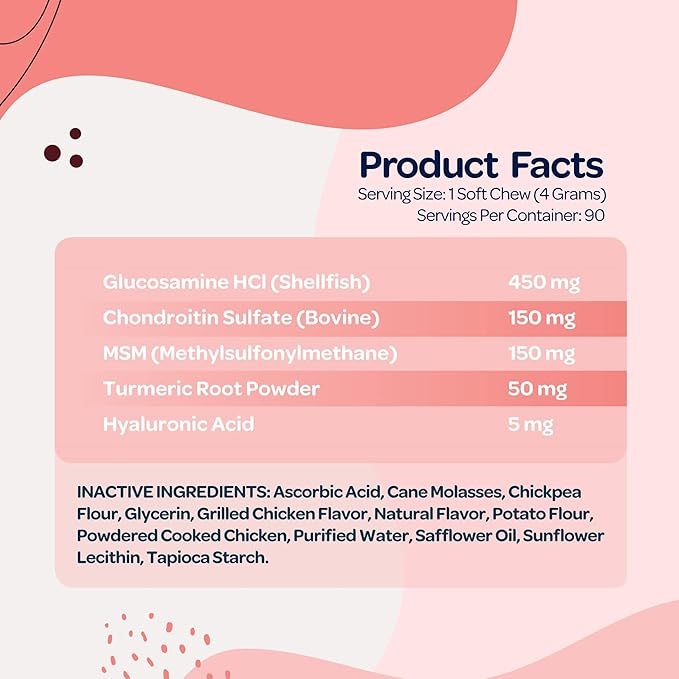 - Snout to Tail Benefits - Our turmeric and glucosamine chews for dogs are a great way to offer hip and joint support for dogs of all ages while also supporting daily activity mobility and flexibility