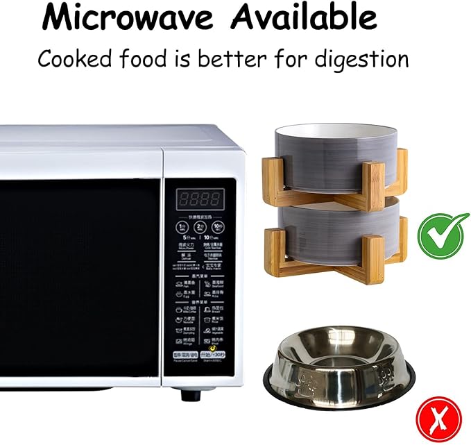 - DISHWASHER MICROWAVE SAFE - Ceramic pet bowls is made of Porcelain Ceramic with wood frame to keep from sliding on the floor. Ceramic cat dog bowls are high temperature ceramic, non-toxic durable. and the cat dog food water bowls conveniently dishwasherable so it can be easily cleaned. No Fuss.