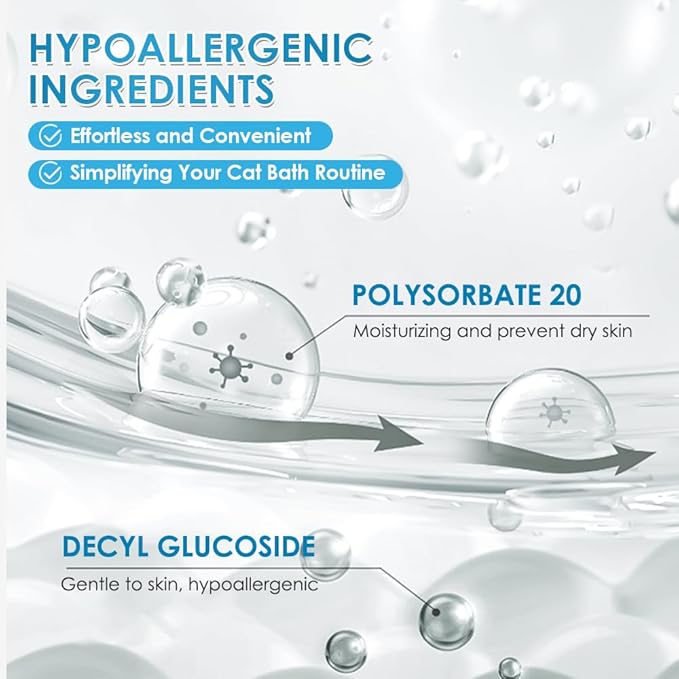- ๐ธ A COMFORTABLE EXPERIANCE - Our waterless cat shampoo( or waterless shampoo) offers a Ph Balanced, neutral clean, mild scent and tearless formula, providing a comfortable and cozy experience to your cat while giving it a cat bath.