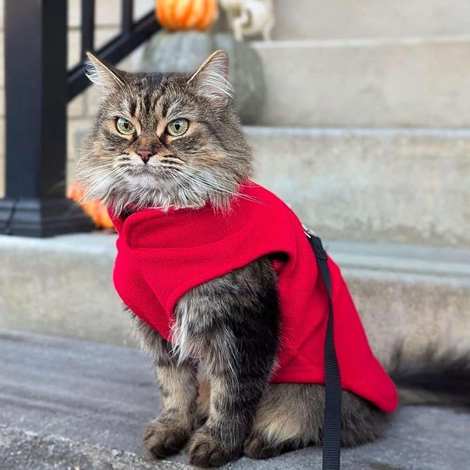 JACKO & CO - Fleece Vest Sweater with Leash Ring - Soft Lightweight Breathable for Puppies Small Medium Dogs, Kitten, Cats, Chihuahua - Warm for Fall/Autumn/Winter (Red, Medium 6-10lbs)