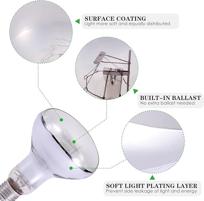 - 【KIND CUSTOMER SERVICE】Heat lamp for reptiles are fragile glass products. There may be damaged during transportation, get a new replacement or let us know at first time when anything unexpected happens.
