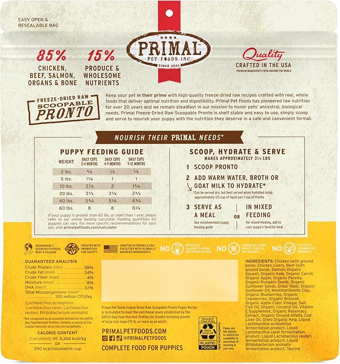 Primal Freeze Dried Puppy Dog Food, Pronto Mini Nuggets; Scoop & Serve, Complete & Balanced Meal; Also Use As Topper or Treat; Premium, Healthy, Grain Free, High Protein Raw Dog Food (25 oz)