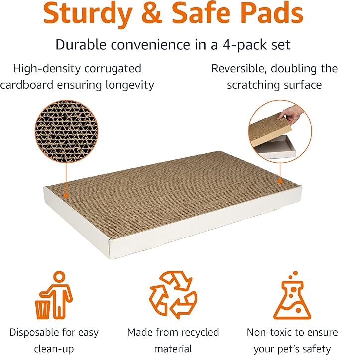 Amazon Basics Corrugated Cardboard Cat Scratchers, 4 Pack, White