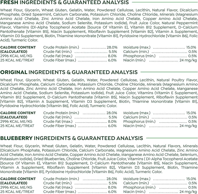 - A Nutritious Snack: Greenies dental chews are Made with natural ingredients plus vitamins, minerals, and other nutrients, and are accepted by the Veterinary Oral Health Council for at-home oral care