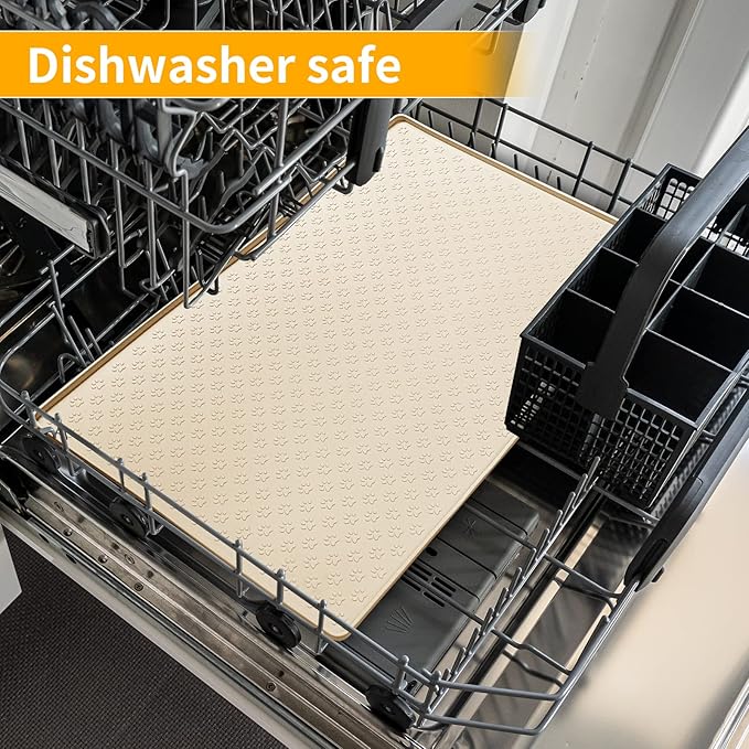 Ptlom Silicone Pet Placemat for Dog and Cat, Waterproof Non-Slip Pet Feeding Bowl Mats for Food and Water, Small Medium Large Tray Mat Prevent Residues from Spilling to Floor, Beige, 24.5" 16.5"