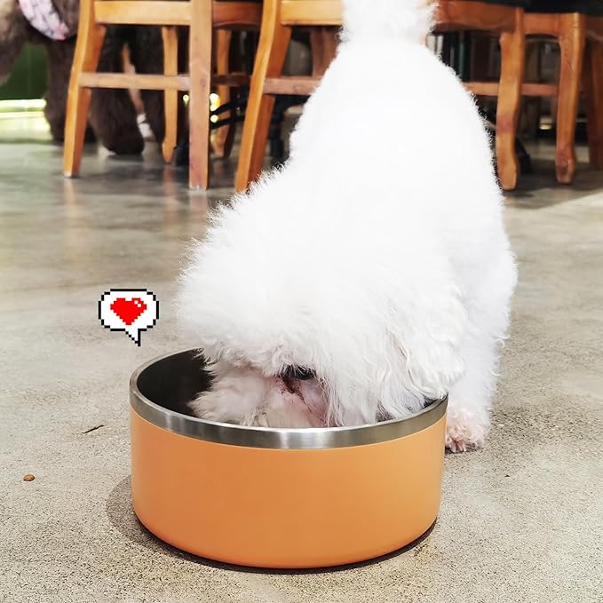 LIHONG Stainless Steel Dog Bowls for Large Dogs,Dog Food Water Bowls with Non Slip Rubber Bottom,Pet Feeding Bowl,Double Wall Insulated,Rustproof(64oz,Orange)