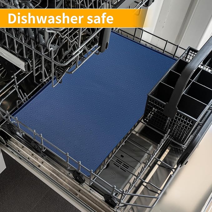 Ptlom Silicone Pet Placemat for Dog and Cat, Waterproof Anti-Slip Pet Feeding Bowl Mats for Food and Water, Small Medium Large Tray Mat Prevent Residues from Spilling to Floor, Navy Blue, 31.5" 23.6"