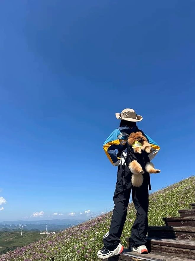 - 【COMFORTABLE & EASY TO CLEAN】: ①The ventilated mesh design on both sides of this dog carrier bag makes air circulation more efficient. ②The pet crotch fabric is easy to clean and does not stain. ③The leg and tail openings are designed with soft wrap-around edges to make your pet more comfortable.