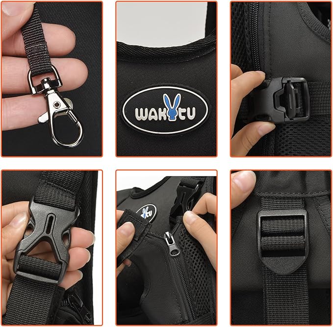 - 【UNIQUE DESIGN】: ① Back mesh back pad, heat dissipation and ventilation when carrying. ②Adjustable wider and thicker padded straps, maximum length 39.6 inches, long time carrying without strangling shoulders. ③ Waist fixed belt, keep the back of the pet does not shake, more stable. ④Back built-in PP board, not easy to deformation collapse.