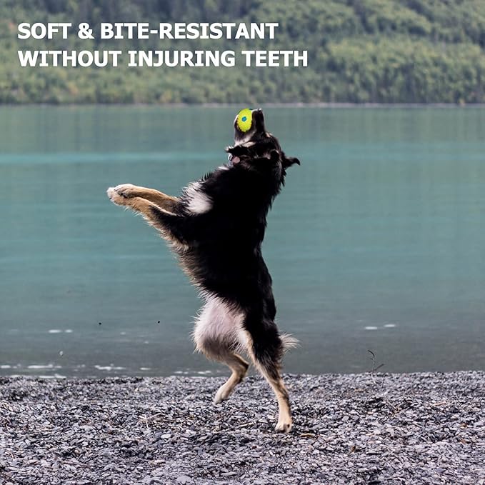 - BRIGHT COLORS - Bright yellow, blue, orange , easy to locate in bushes, leaves, and grass so dogs can quickly find and retrieve from far.