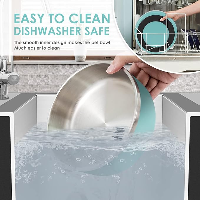 IKITCHEN Dog Bowl for Food and Water, 64 Oz Stainless Steel Pet Feeding Bowl, Durable Non-Skid Double Wall Insulated Heavy Duty with Rubber Bottom for Medium Large Dogs (64 Ounces/8 Cup, MintGreen)