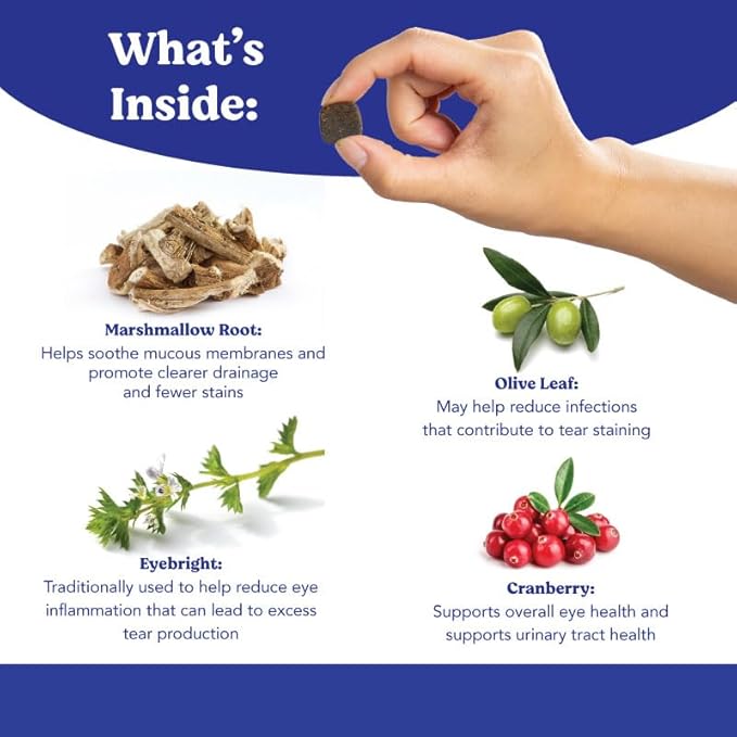- TRUSTED PET SUPPLEMENT: Help prevent tear stains with our proprietary blend of antioxidants that help regulate the gut and bind with stain-causing minerals and helps to prevent discoloration.