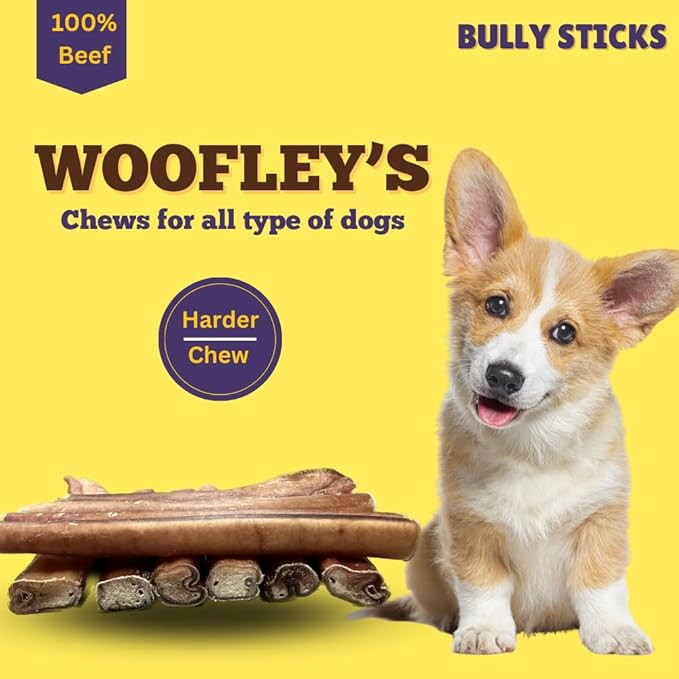 Woofley's 6" Jumbo Thick Buffalo Bully Sticks - (18 Count) - Bully Sticks for Dogs - Long Lasting Bully Stick Dog Chews