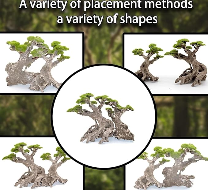- Realistic Coloring- Looks like a real bonsai tree! This decoration is beige and gray colored with faux moss to make it look more natural and visually appealing in your tank. It’s a perfect Zen, calming accent to your room.
