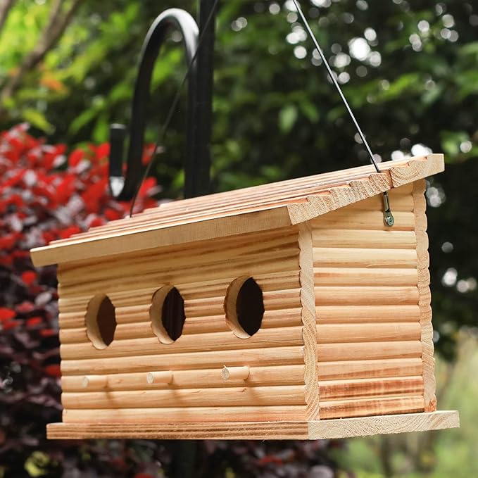 - 【EASY TO PLACE】 - You can Put it on the flat place or on a wooden board or hang the birdhouse on a sturdy branch of the garden wherever you want.size:12.2" x 6" x 7.7" Hanging
