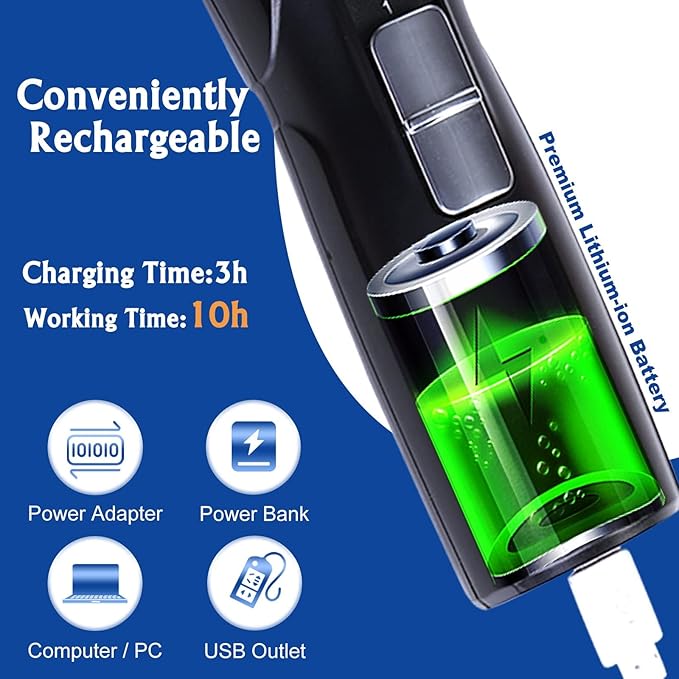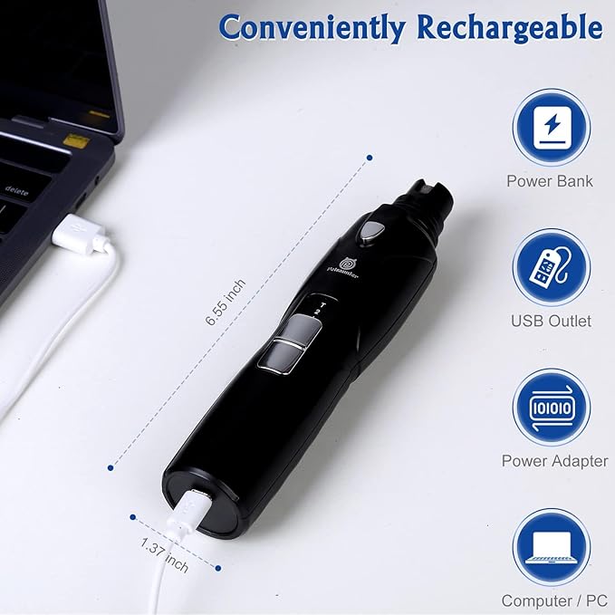 - 【Portable & Rechargeable】: The cordless dog nail trimmer has a Type-C port and a charging indicator light. The super long-life rechargeable battery allows you to grind approximately 10 hours on a full charge.Charging time only takes 2 hours.