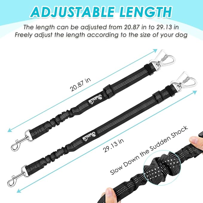 SlowTon Dog Seat Belt Harness for Car, Dog Car Harness Adjustable Mesh Breathable & Dog Seatbelt Safety Tether with Elastic Bungee for Small Medium Large Pets(Light Blue, Double Clip, M)