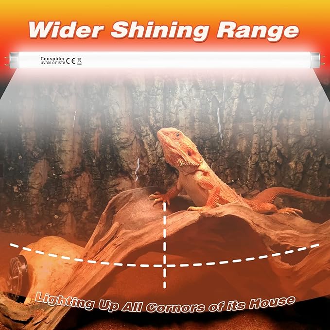- 【10.0 UVB Light】The F15T8/T8F15 lamp provides sufficient UVB light to promote calcium absorption in pets, promote appetite and avoid soft-shelled eggs.Enables your pet to grow up healthy. F15T8, T8F15 are the same model