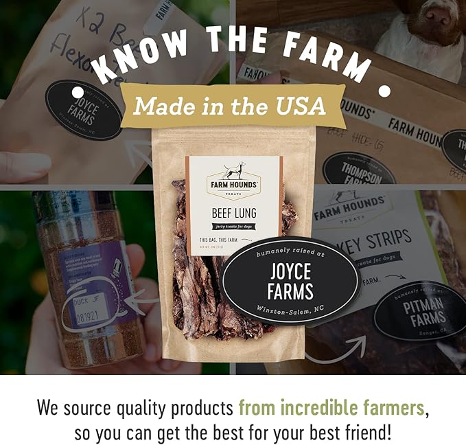 - FARM HOUNDS - At Farm Hounds, we believe healthier animals are happier animals. With your canine in mind, we make all of our treats nutritionally beneficial and delicious. Our close relationship with all-American family farmers who raise their animals in a humane way, helps us use premium raw materials for our products.
