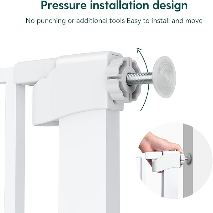 - AUTO-CLOSE: Our extra tall baby gate features a double locking safety release for added security. It is equipped with an auto-close feature that gently closes the door and a stay-open feature that keeps it open. The baby gate can be opened easily with one-hand operation even while holding a baby.