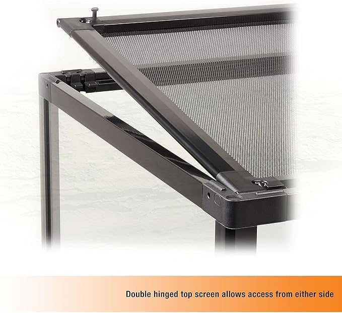 - ๐ฆ EASY ACCESS โ The top screen, with a double-hinge top closure, can be opened from either side, making it easy to access the inside of your terrarium from any side.