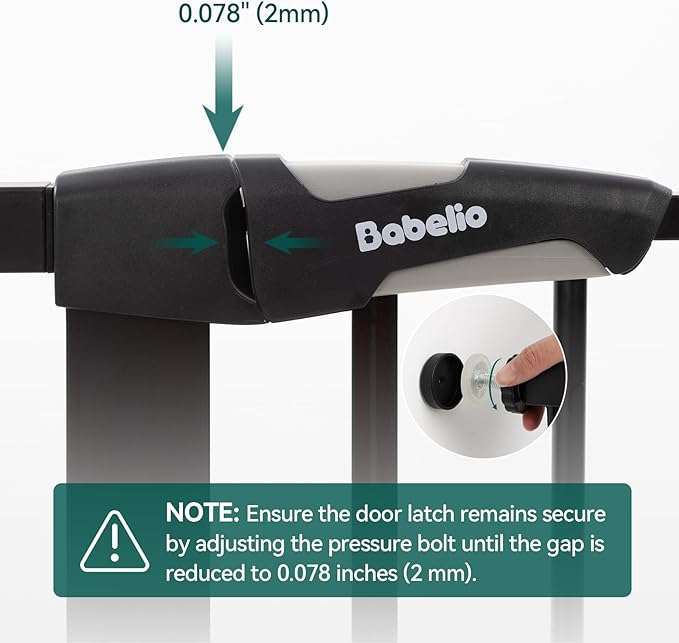 - EASY SET UP: Simple and quick pressure installation, not require additional tools and no holes in the wall. NOTE: Before installation there will be a gap between the gate latch and the frame which is NOT a defect and it is NOT bent. This gap will be eliminated once installed.