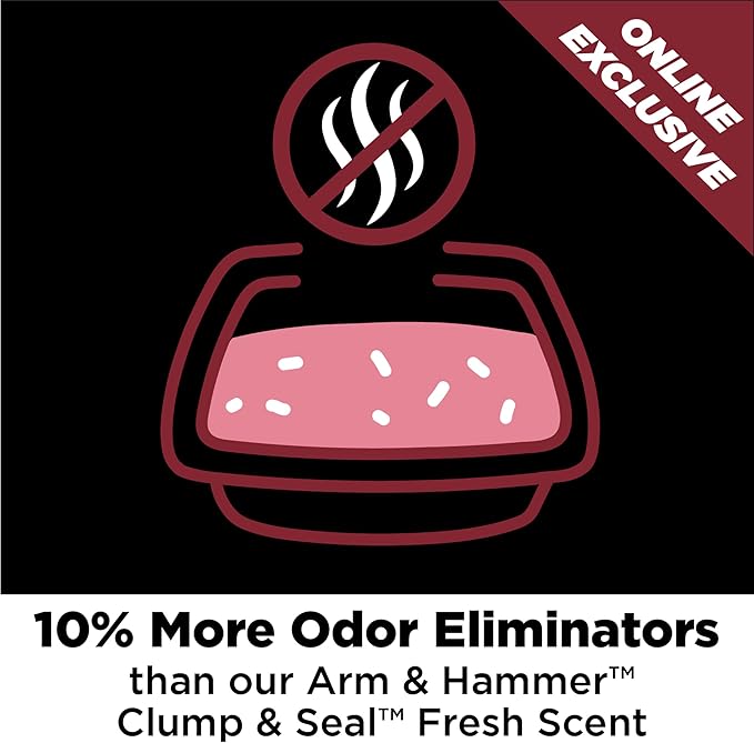 - 10% MORE ODOR ELIMINATORS: Benefit from a 10% increase in odor-eliminating power with this clump and seal cat litter that features ARM & HAMMER Baking Soda for unparalleled odor management.