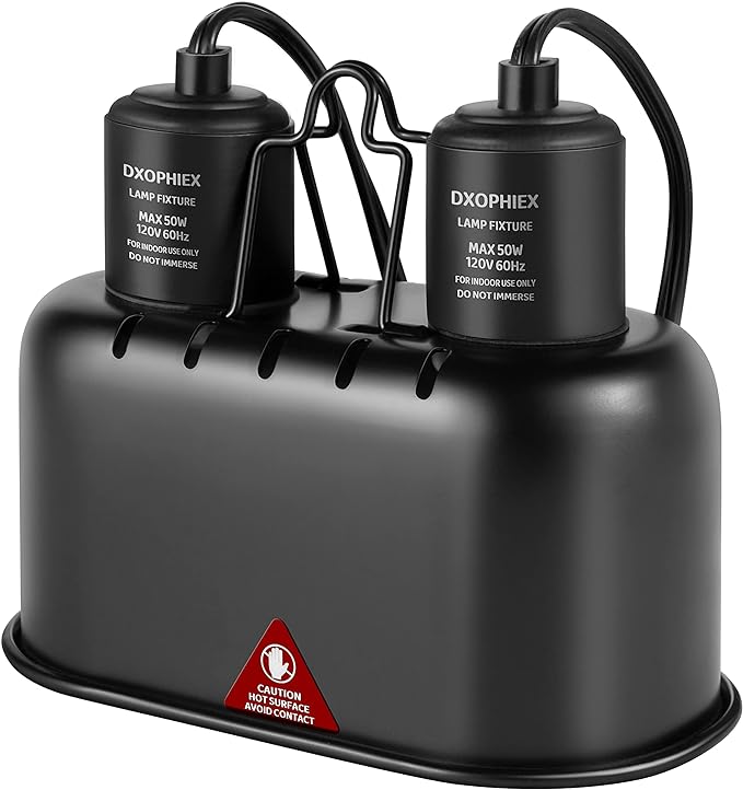- 【Dual Lamp Fixture&Max 40 W】:The reptile lamp fixture can be matched with two bulbs at the same time and each socket can bear max 40W. Suitable for various types of heat lamp for reptiles (heating lamps, ceramic heating lamps, UVB reptile lamps, daylight lamps and nightlight lamps). You can freely replace according to the actual use needs.