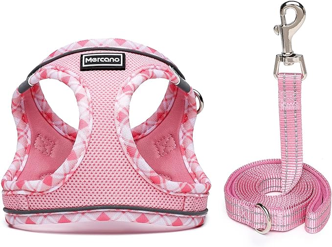 Mercano Soft Mesh Dog Harness and Leash Set, No-Chock Step-in Reflective Breathable Lightweight Easy Walk Vest Harnesses with Safety Buckle for Small Dogs, Cats (Pink, S)