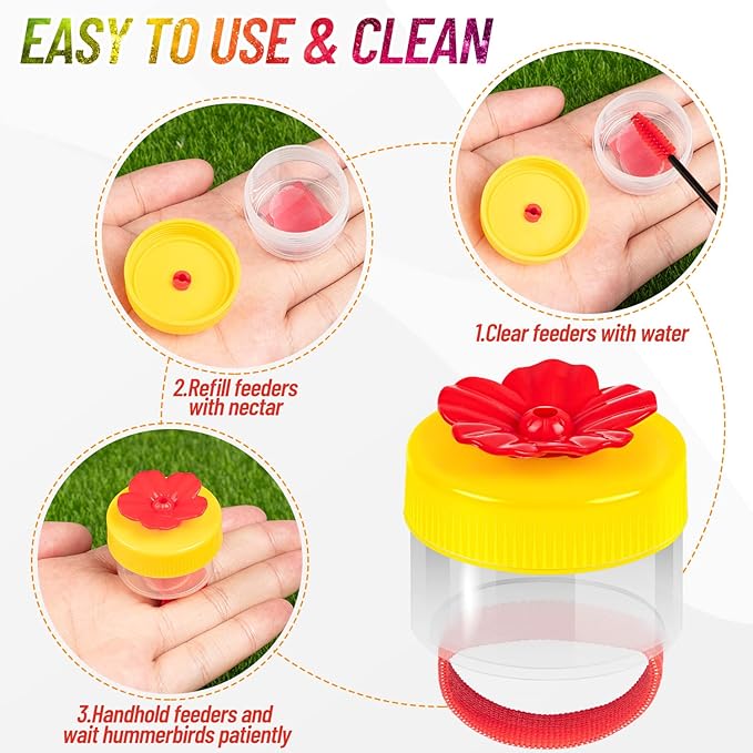 - EASY TO CARRY: The hand held hummingbird feeders is very small, and occupies little space, you can hang it in your pocket or stuff it into a backpack, very convenient to carry with you