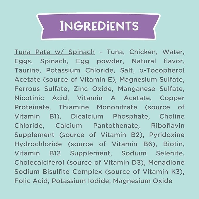 - GRAIN FREE & NON-GMO: Our pate tuna and spinach is prepared without any grains, artificial additives, or by-products, as our goal is to feed cats the way nature intended. We always source wholesome ingredients to promote optimal health and nutrition.