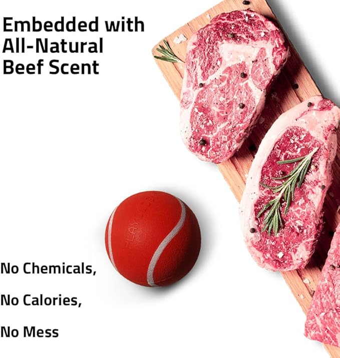 Playology Dog Toys | Squeaky Chew Ball - Bouncy Durable Floating Fetch Ball for Dogs, Value 2-Pack | Medium Beef Scented Toy - Easy to Clean and Made from Non Toxic Materials