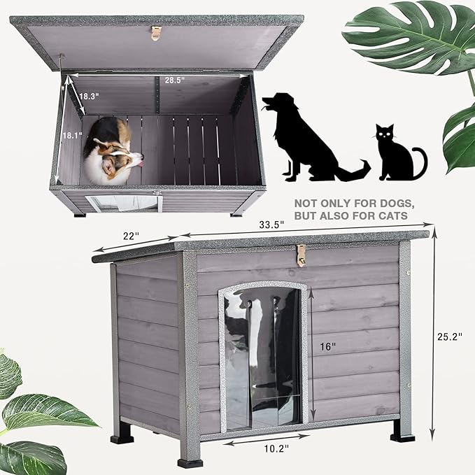 - WEATHER PROOF: Sturdy wood with iron frames, waterproof asphalt roof and thick foot pads help withstand the bad weather. Let your pets stay in our insulated dog house. No matter how the weather changes, your pets will feel comfortable.