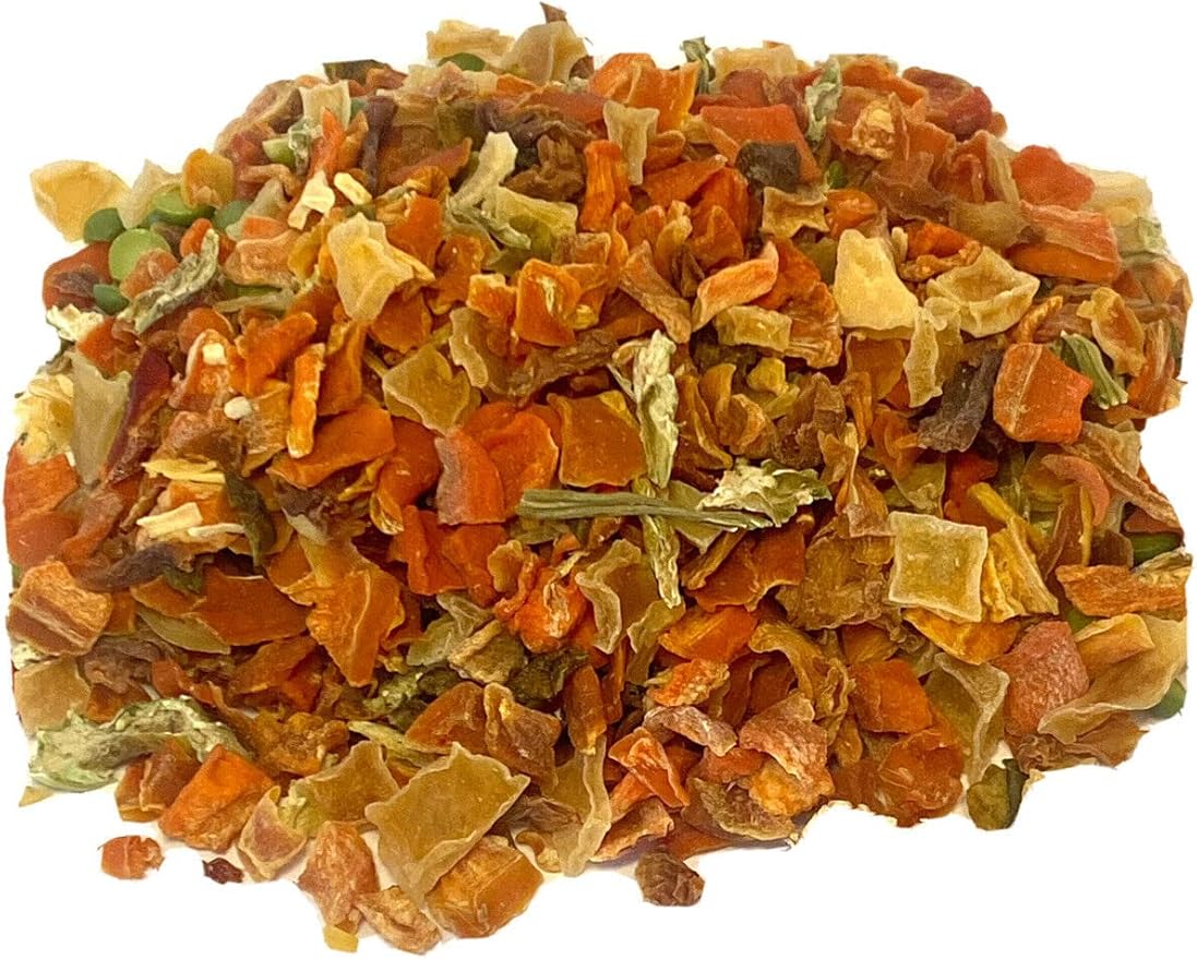 - Ingredients include spilt peas, carrots, potato, collard, green pepper, red pepper, sweet potato, kale, oyster calcium, limestone, calcium