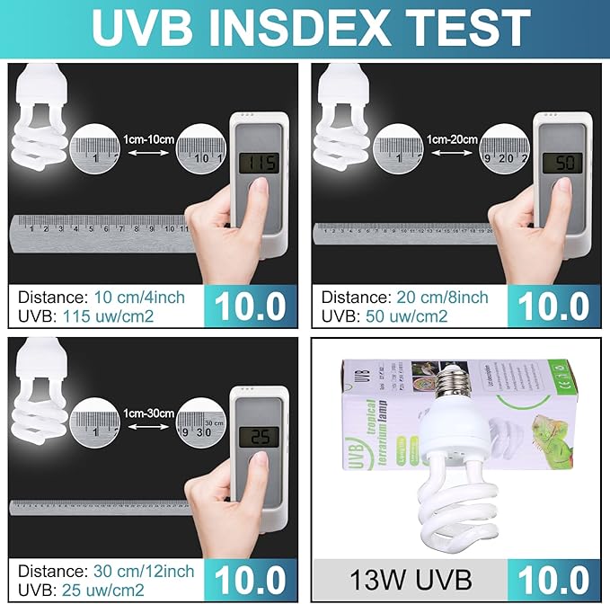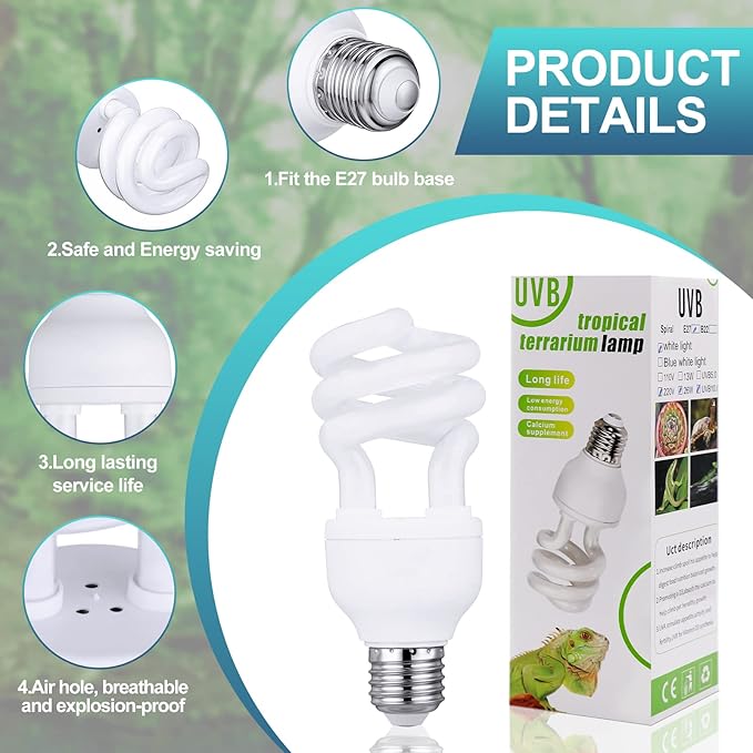 - Enjoy a complete package: Our product includes four pieces of 10.0 UVB light bulbs, each of 220v and 13w, with a standard E27 bulb base that is easy to install and use. It's the perfect solution for your daily needs and simulating a desert environment
