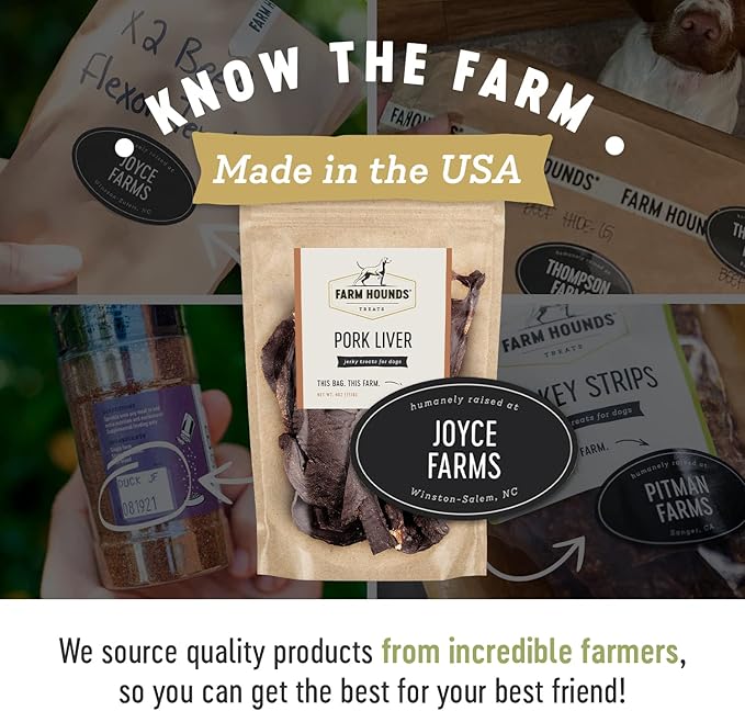 - FARM HOUNDS - At Farm Hounds, we believe healthier animals are happier animals. With your canine in mind, we make all of our treats nutritionally beneficial and delicious. Our close relationship with all-American family farmers who raise their animals in a humane way, helps us use premium raw materials for our products.